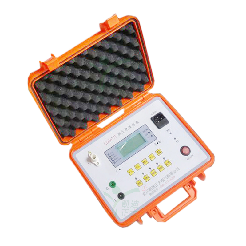 KD2677E高壓絕緣搖表采用高壓逆變電路將DC供電逆變?yōu)轭~定高壓輸出1000V、2500V、5000V,,10000V施加到被測(cè)試品兩端,采用了電壓、電流采樣電路,將采樣被測(cè)試品兩端的電壓和