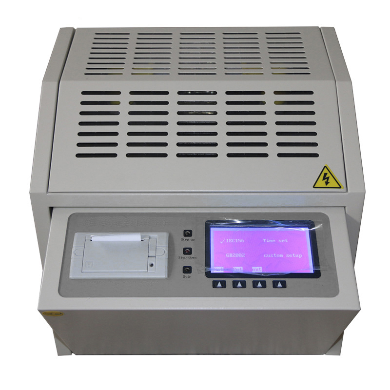 3. 本儀器操作簡單,操作人員只需按使用說明輸入簡單指令,儀器將會按照設置自動完成絕緣油的耐壓測試。每次擊穿電壓值會自動存儲,測試完成后,打印機開啟,可打印出各次擊穿電壓值和平均值