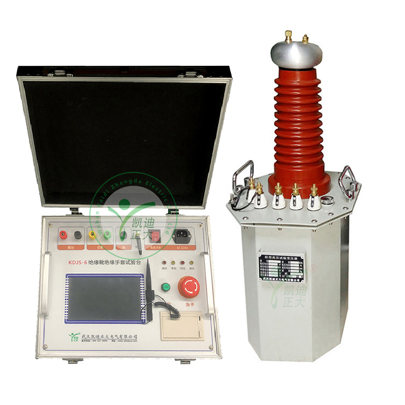 KDJS-6A智能絕緣手套耐壓試驗裝置是絕緣靴(手套)批量試驗的專用設備,有效地解決了以往不規則的測試方法,簡化了測試程序,提高了檢測速度,減輕了檢測強度,保障了檢測人員的安全,可靠地鑒別絕緣手套(靴)的泄漏電流,絕緣老化和工頻耐壓等參數,可同時檢測8只絕緣手套(靴)。