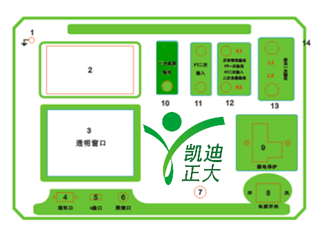 13.CT一次輸入口 14.機箱右側電源輸入,~220V(±10%)