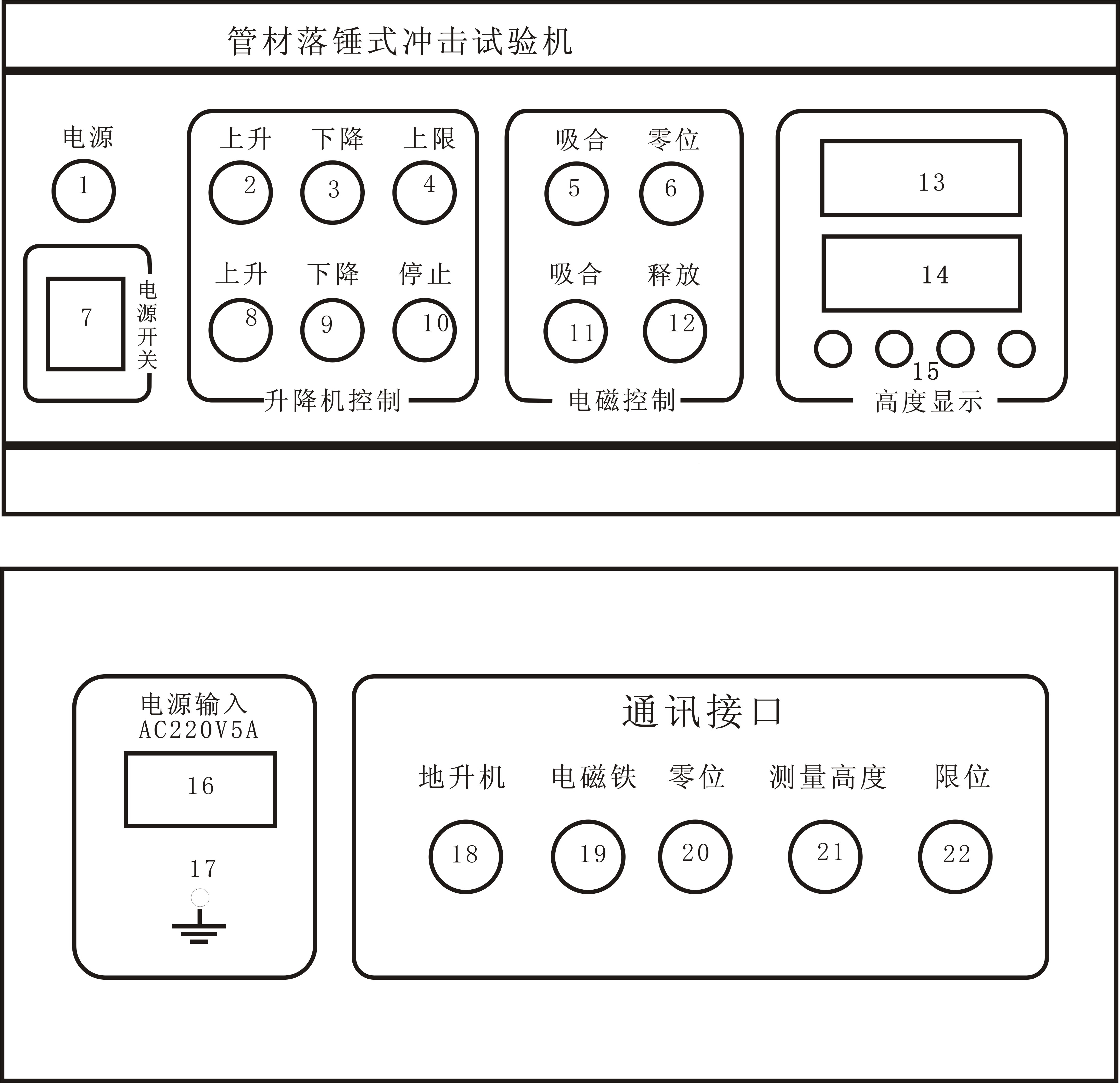 18、19、20、21、22、通訊接口,與試驗(yàn)機(jī)通訊。