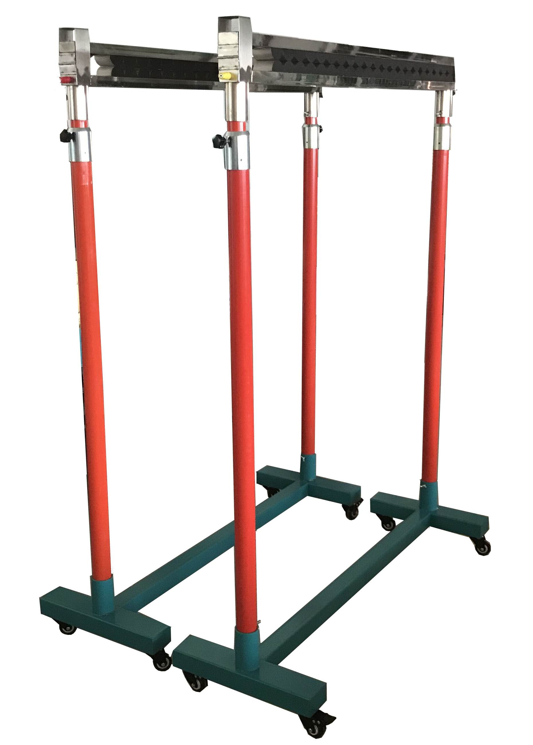 手動升降支架采用分體式結構,可根據試品長短的需求,調節支架的距離來滿足試驗的要求,每個分體支架有大小2根絕緣管嵌套組成,第一節有效高度為1.2米,在電壓要求比較高時,通過手動拉升支架,調節支架的高度,在接頭處有安裝緊固旋鈕,當支架升到合適的位置時,旋轉固定旋鈕將第二節固定。