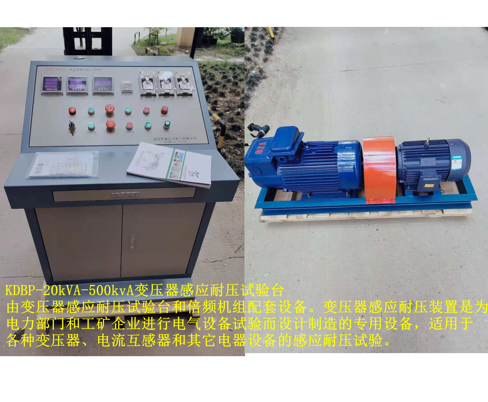 這次采購的KDBP-20kVA變壓器感應耐壓試驗臺由變壓器感應耐壓試驗臺和倍頻機組配套設備。變壓器感應耐壓裝置是為生產電力部門定制的各種變壓器的感應耐壓試驗出廠檢測,倍頻感應機組還可以給工礦企業進行電氣設備試驗而設計制造的專用設備,適用于各種變壓器、電流互感器和其它電器設備的感應耐壓試驗。