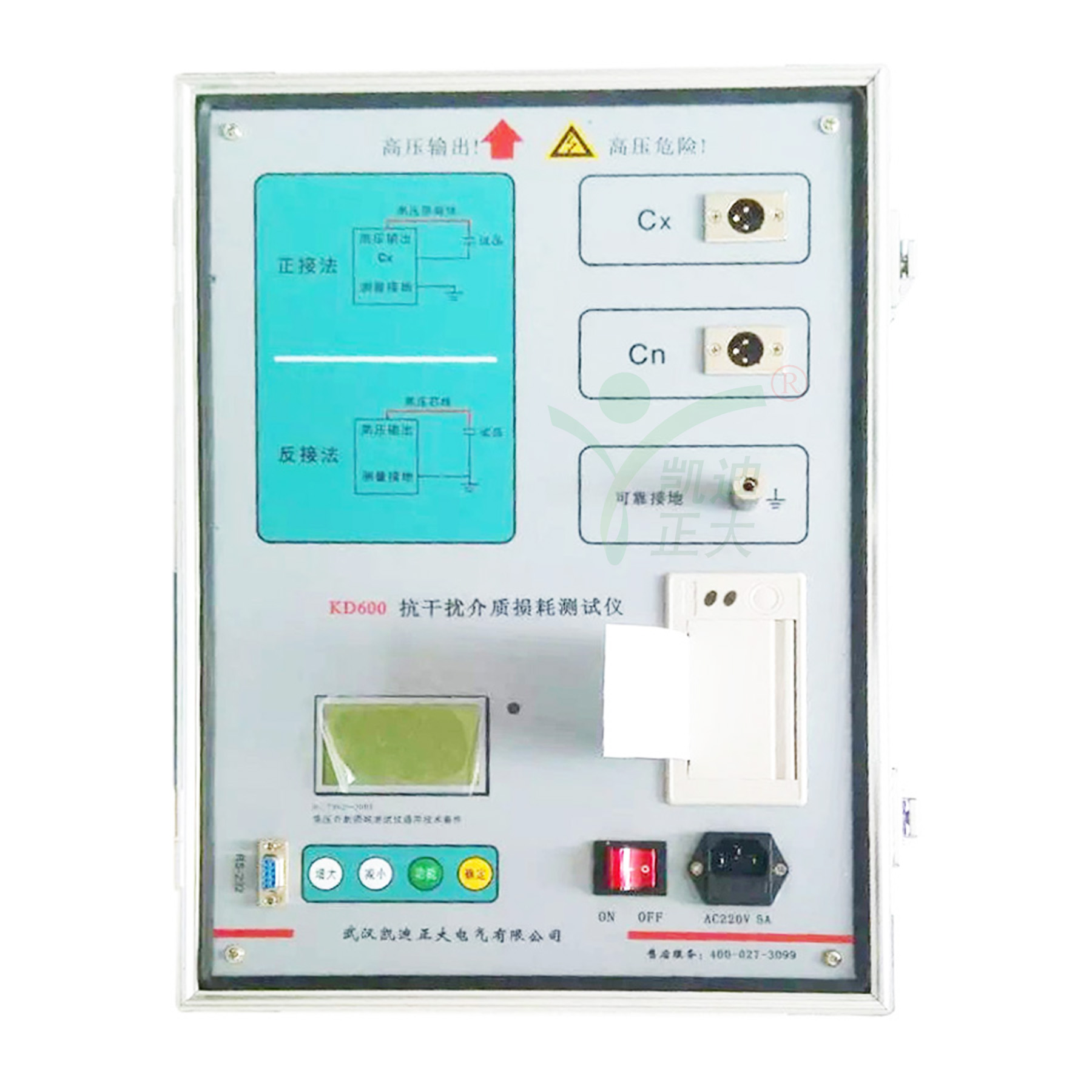 KD600介質(zhì)損耗測試儀是發(fā)電廠、變電站等現(xiàn)場自動測量各種高壓電力設(shè)備介損正切值及電容量的高精度儀器。由于采用了變頻技術(shù)能保證在強電場干擾下準確測量。儀器采用中文菜單操作,微機自動完成全過程的測量。