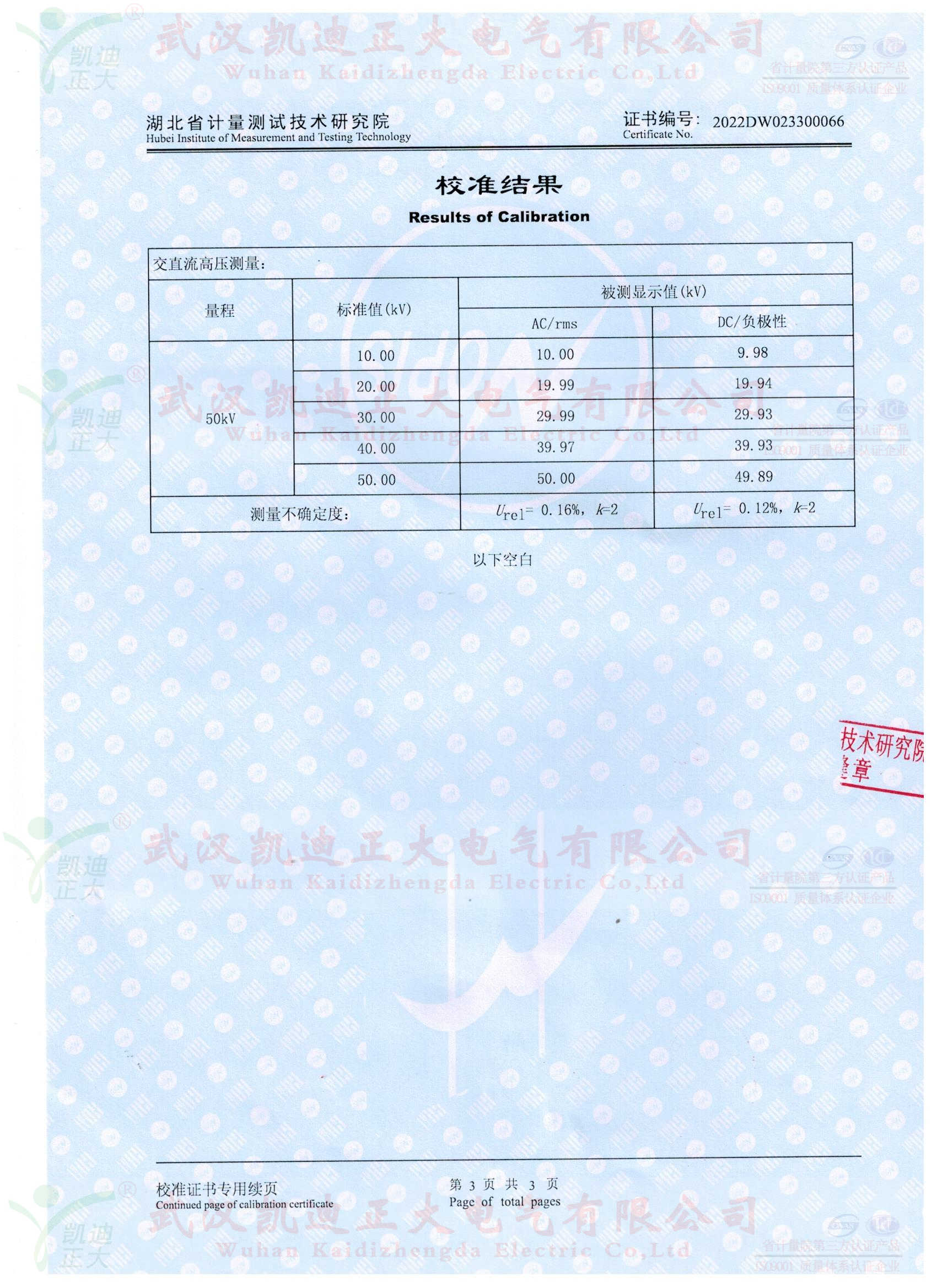 校準(zhǔn)點(diǎn)包括 0、10kV、20 kV 30 kV 40 kV 50 kV;直流電壓 0-50kV,校準(zhǔn)點(diǎn)包括0、10kV、20 kV 30 kV 40 kV 50kV。送至省級及以上計(jì)量院進(jìn)行校準(zhǔn)或檢定。